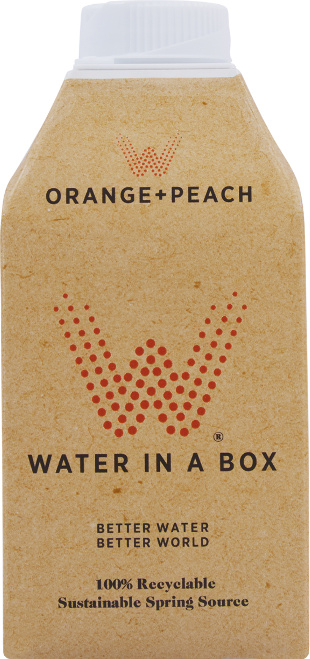 Orange and peach flavoured spring water drink with sweetener. Sustainable spring source with 100% recyclable packaging.