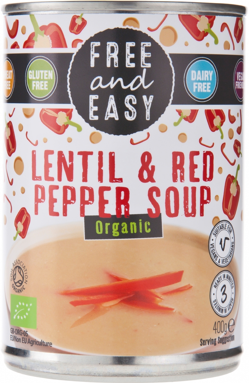 Water, Red Lentils*(14%), Red Peppers*(8%), Vegetable Bouillon* (sea salt, maltodextrin, rice flour*, vegetables* (7%) (onions*, carrots*, Parsnip*), yeast extract (Gluten Free), sunflower oil*, parsley*, turmeric*), Potato diced*, Potato Flakes*, Onion Powder*, Garlic Powder*, Ground Cumin*.