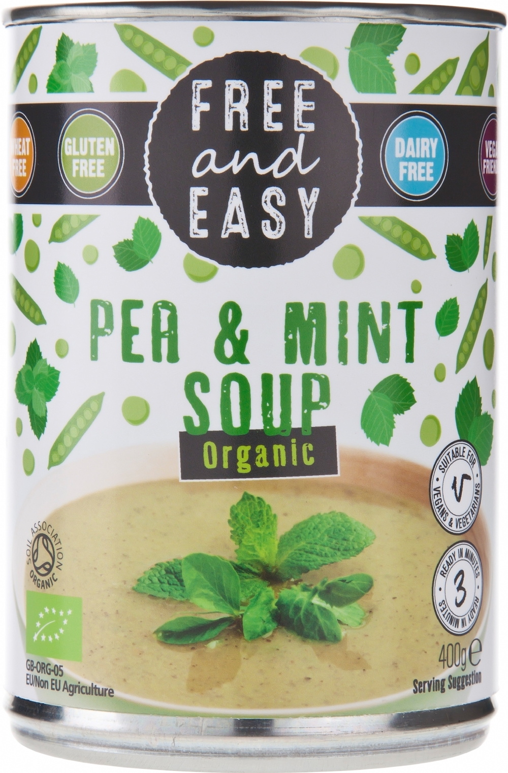 Water, Peas* (23%), Potato Flakes*, Vegetable Bouillon* (sea salt, maltodextrin, rice flour*, vegetables* (7%) (onions*, carrots*, Parsnip*), yeast extract (Gluten Free), sunflower oil*, parsley*, turmeric*), Kibbled Onion*, Sunflower Oil*, Onion Powder*, Mint* (0.1%), Lemon Juice*, Ground Black Pepper*.