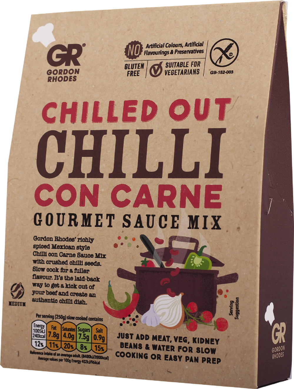 It's time to fill your sombreros! Gordon Rhodes' Gourmet Chilled Out Chilli Con Carne Slow Cooker Sauce Mix is a relaxed and reliable way to make a deliciously rich Mexican style chilli con carne. With added crushed chilli seeds for that extra Arriba, the whole family will be taco'ing about how great this dish is.