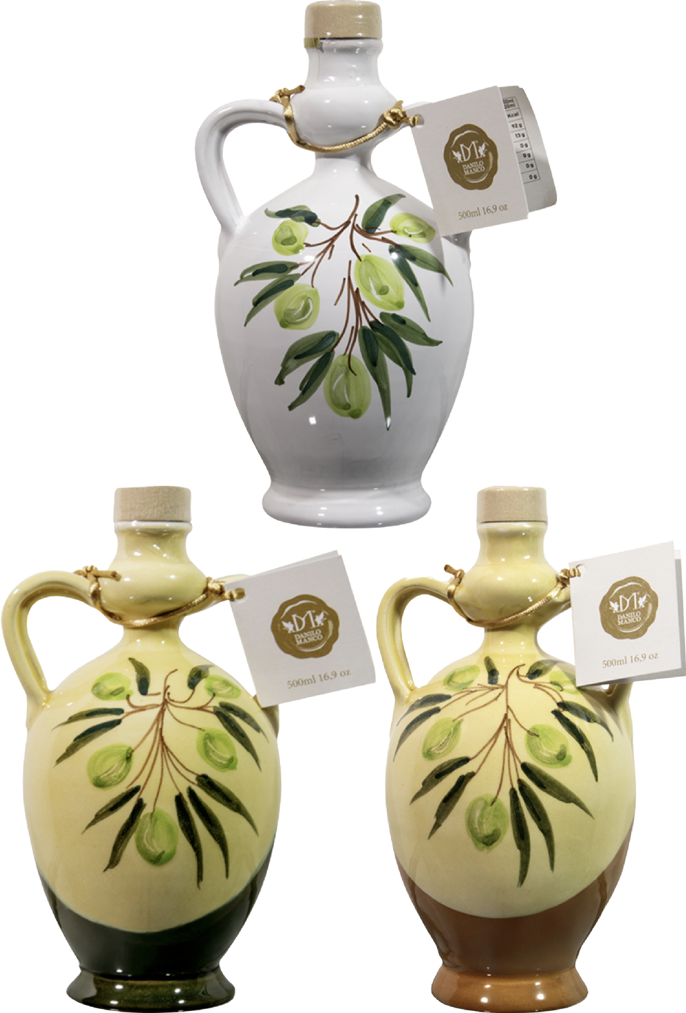 These ceramic bottles are handmade by expert artisans in Puglia. Each piece is unique because it is decorated by hand. This is not just a unique bottle: inside you will find an excellent Extra Virgin Olive Oil to use every day to enrich your dishes.