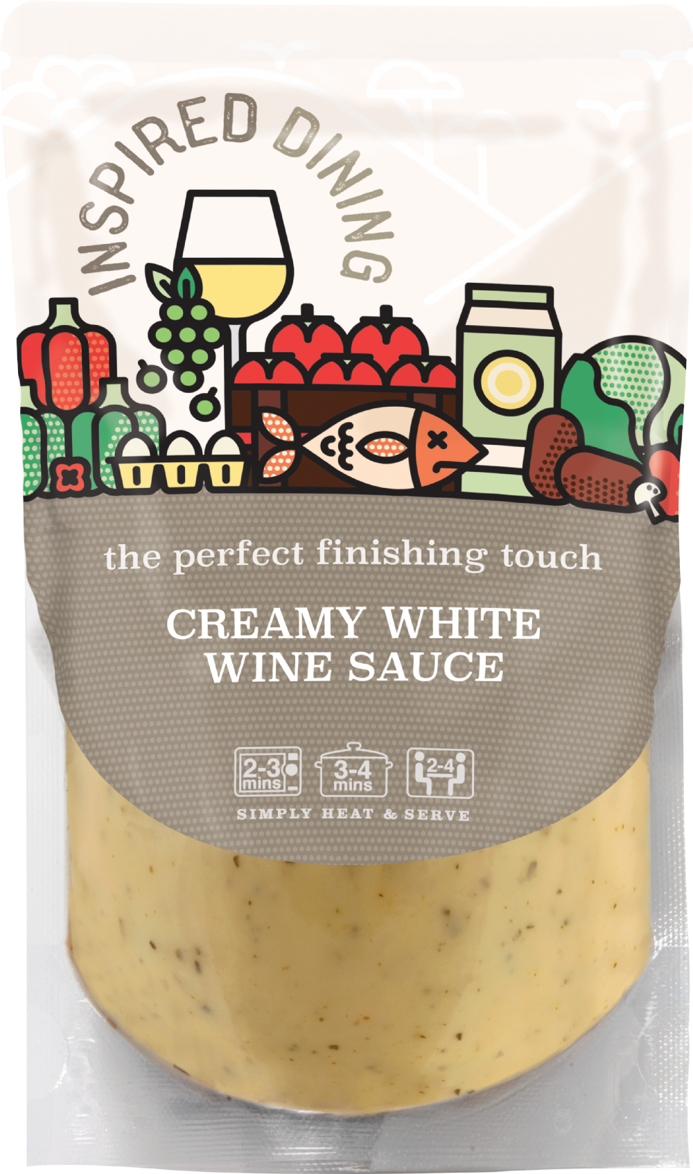 Water, White Wine (18%), (Contains Sulphites), Onions, Double Cream (9%)(Contains Milk), Cornflour, Sugar, Rapeseed Oil, Vegetable Stock (Water, Dried Vegetables (Potato, Onion, Leek, Celery), Salt, Yeast Extract, Carrot Concentrate, Sugar, Sunflower Oil, Lemon Juice Concentrate), Salt, Thyme, Garlic Puree, Emulsifier: Soya Lecithin, Concentrated Lemon Juice, Black Pepper.