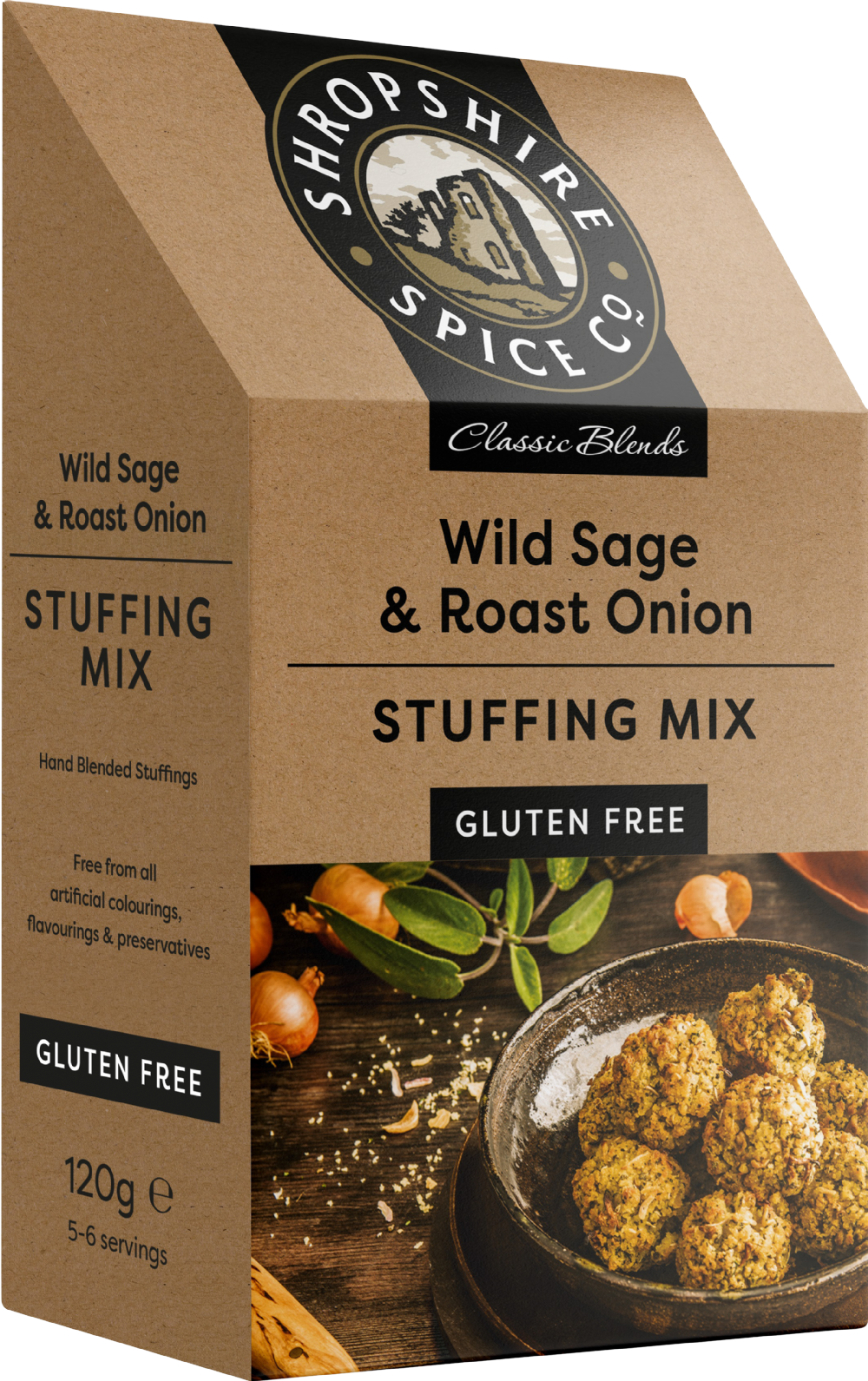 Shropshire Spice Wild Sage & Roast Onion Wholemeal Stuffing Mix is a family favourite and the perfect accompaniment to any roast chicken, turkey or pork dinner. Free from all artificial colourings, flavourings and preservatives, this stuffing mix is hand-blended for maximum flavour.