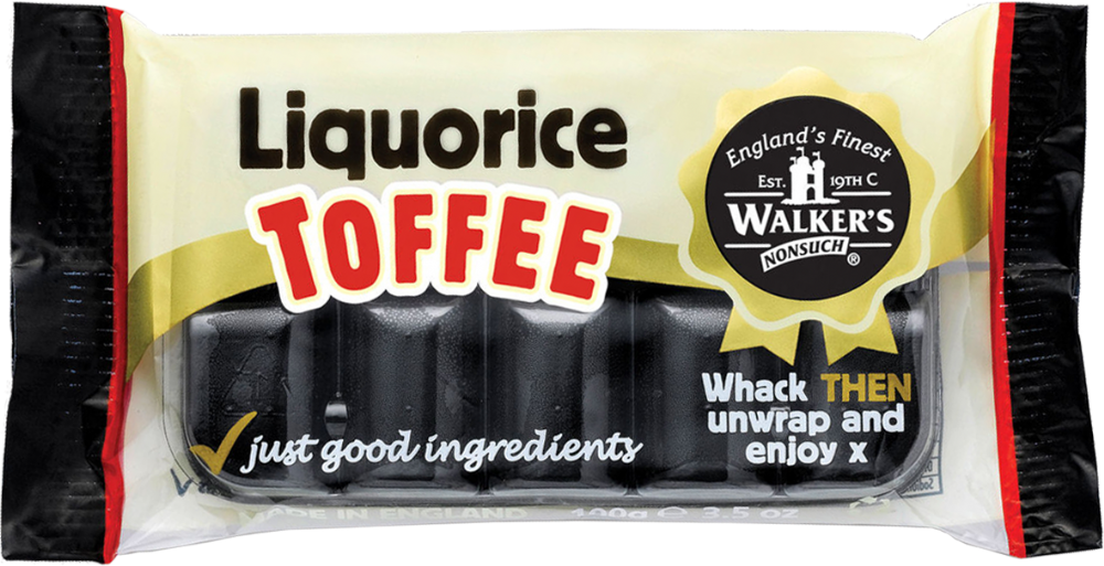 Our Liquorice Toffee in a 100g bar. Whack, THEN unwrap and enjoy!