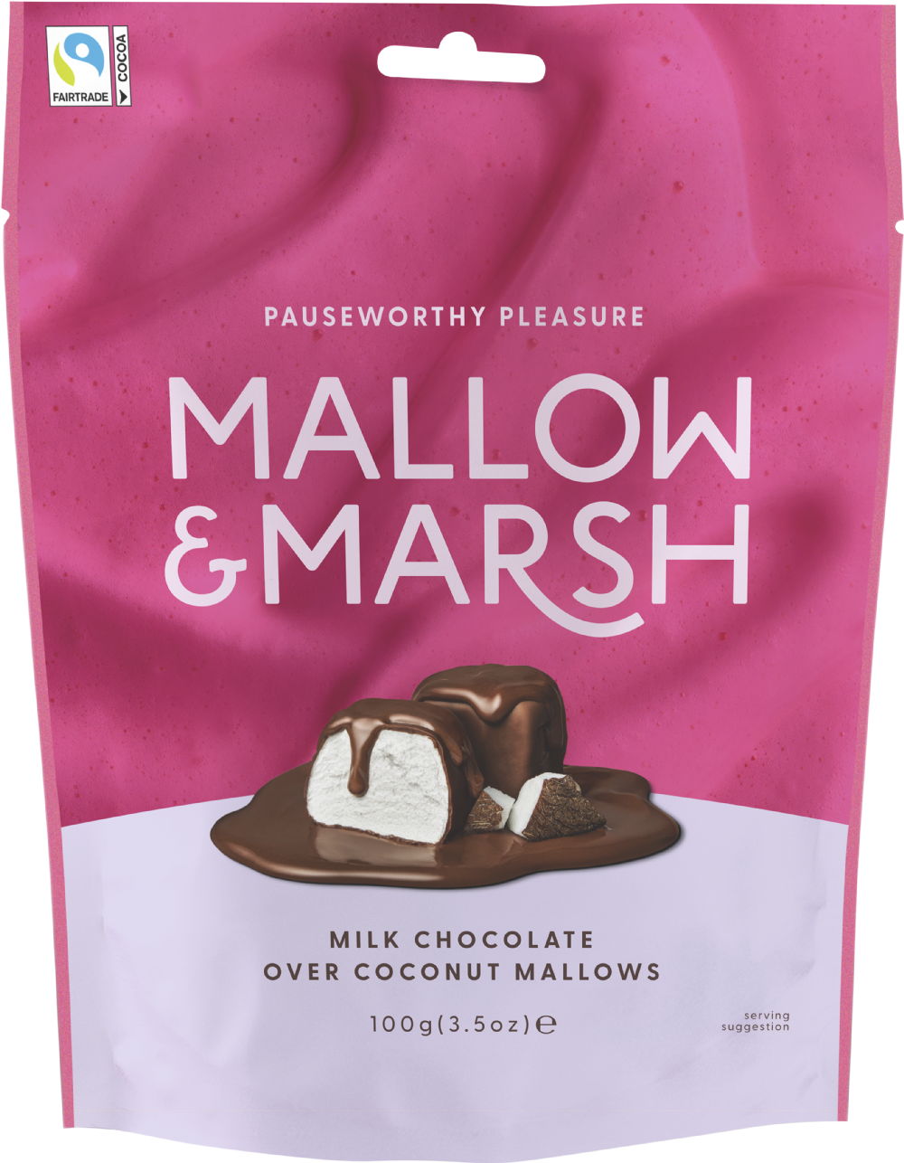 Tropical coconut mallow, covered in our smooth, melting Belgian Fairtrade milk chocolate.