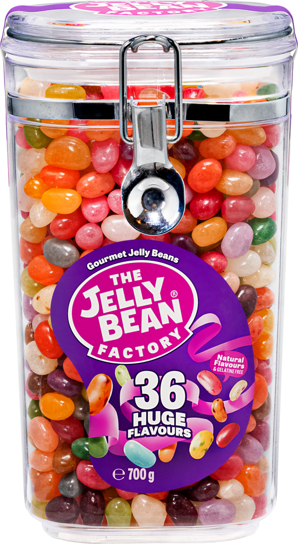 Ready for flavour? At the Jelly Bean Factory we're obsessed with flavour. You too? Good. Join us in our flavour adventure. We've got 36 Huge flavours waiting for you. We bet you can't just eat one. The Jelly Bean Factory. Yes. That's flavour.